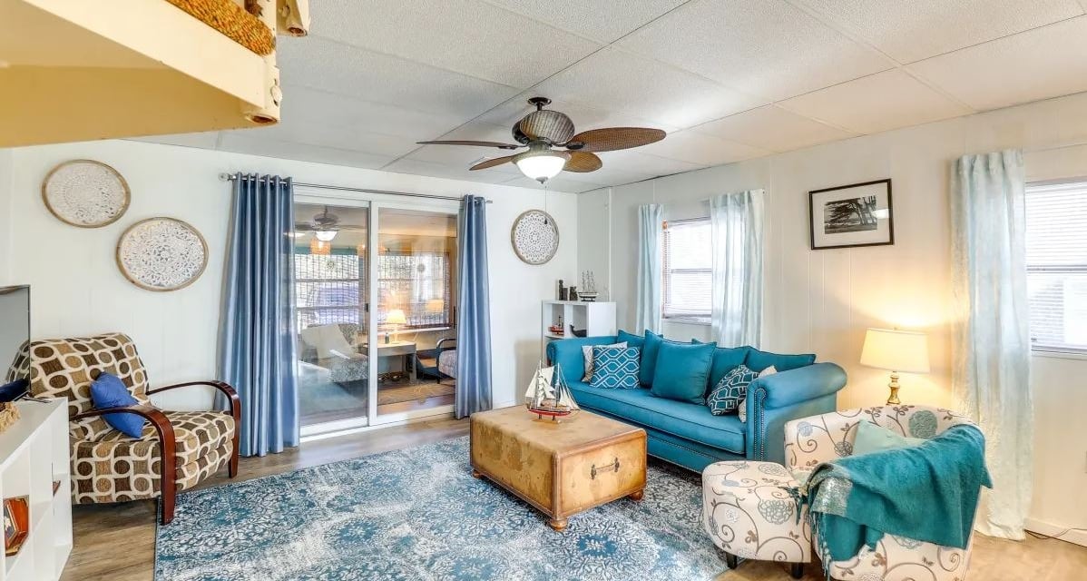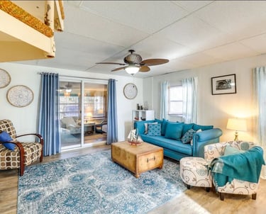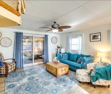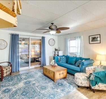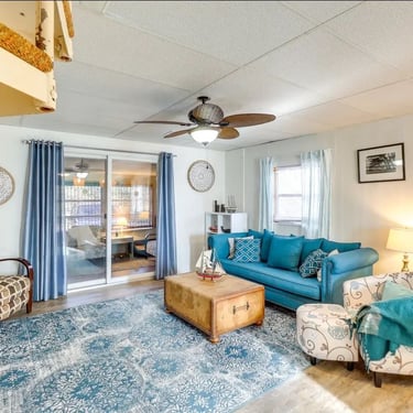 As you step into the home, you'll be greeted by a warm and inviting atmosphere. The living area is tastefully decorated with a coastal theme, creating a relaxing and beachy ambiance. Sink into plush furnishings and unwind after a day of sun-soaked adventures.