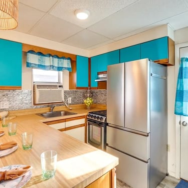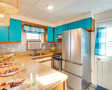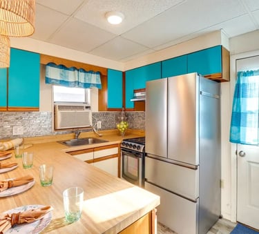 The well-equipped kitchen is a culinary haven, featuring modern appliances and ample counter space for preparing delicious meals. Whether you're cooking up a seafood feast or enjoying takeout from a local eatery, the dining area provides a cozy space for enjoying meals with family and friends.